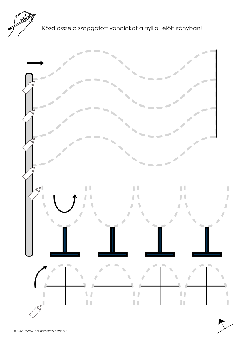 • nagyobb mozgástere lesz a bal kéznek, a gyermek nem ütközik a saját testébe, így könnyedebben tudja tolni az íróeszközt