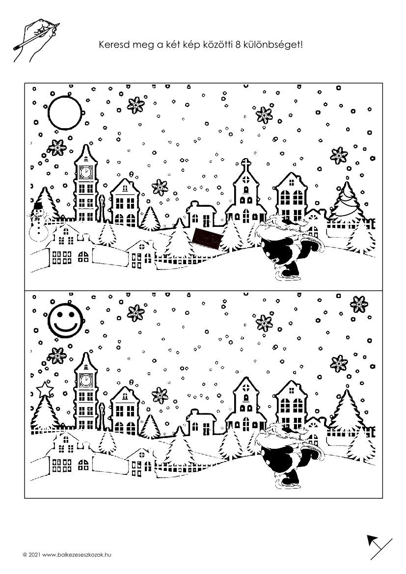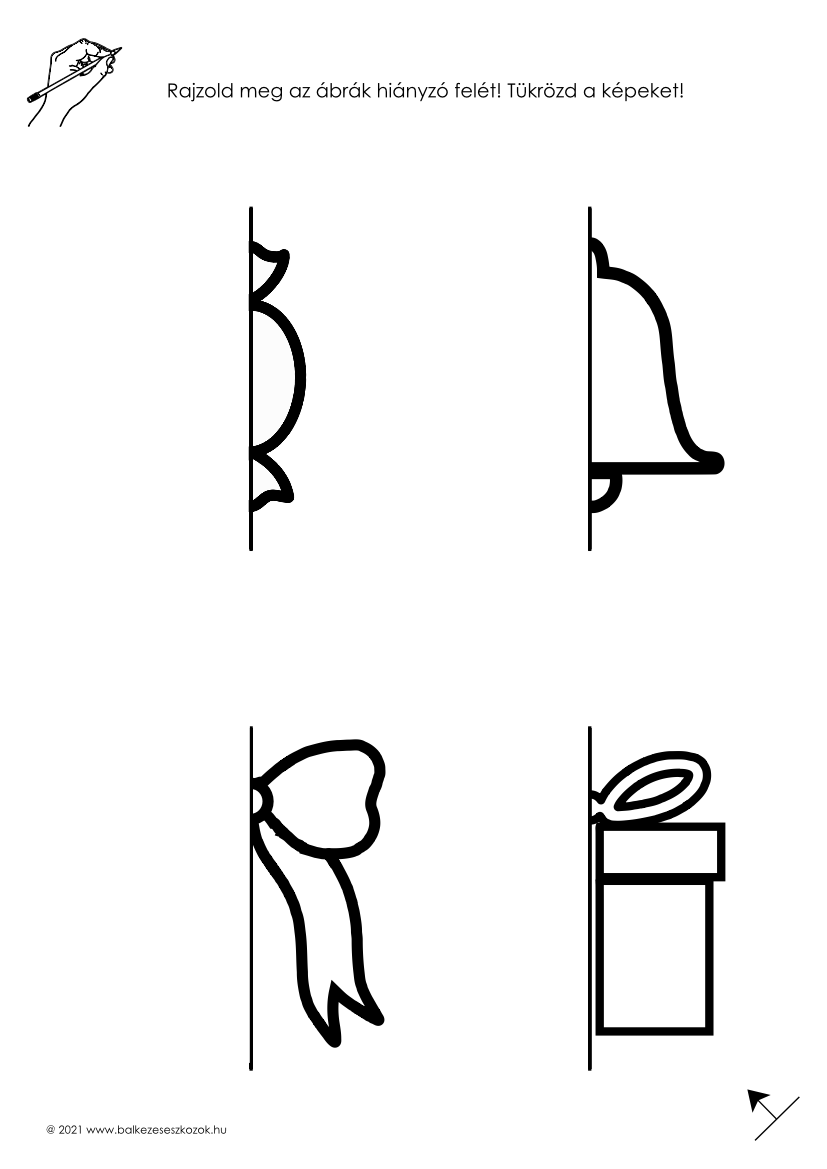 Specialitás, hogy a képkiegészítő feladványokon a minta ábra a jobb oldalra esik, hogy a balkezes csemeték ne takarják el kezükkel és számukra is élvezetes legyen az alkotás.