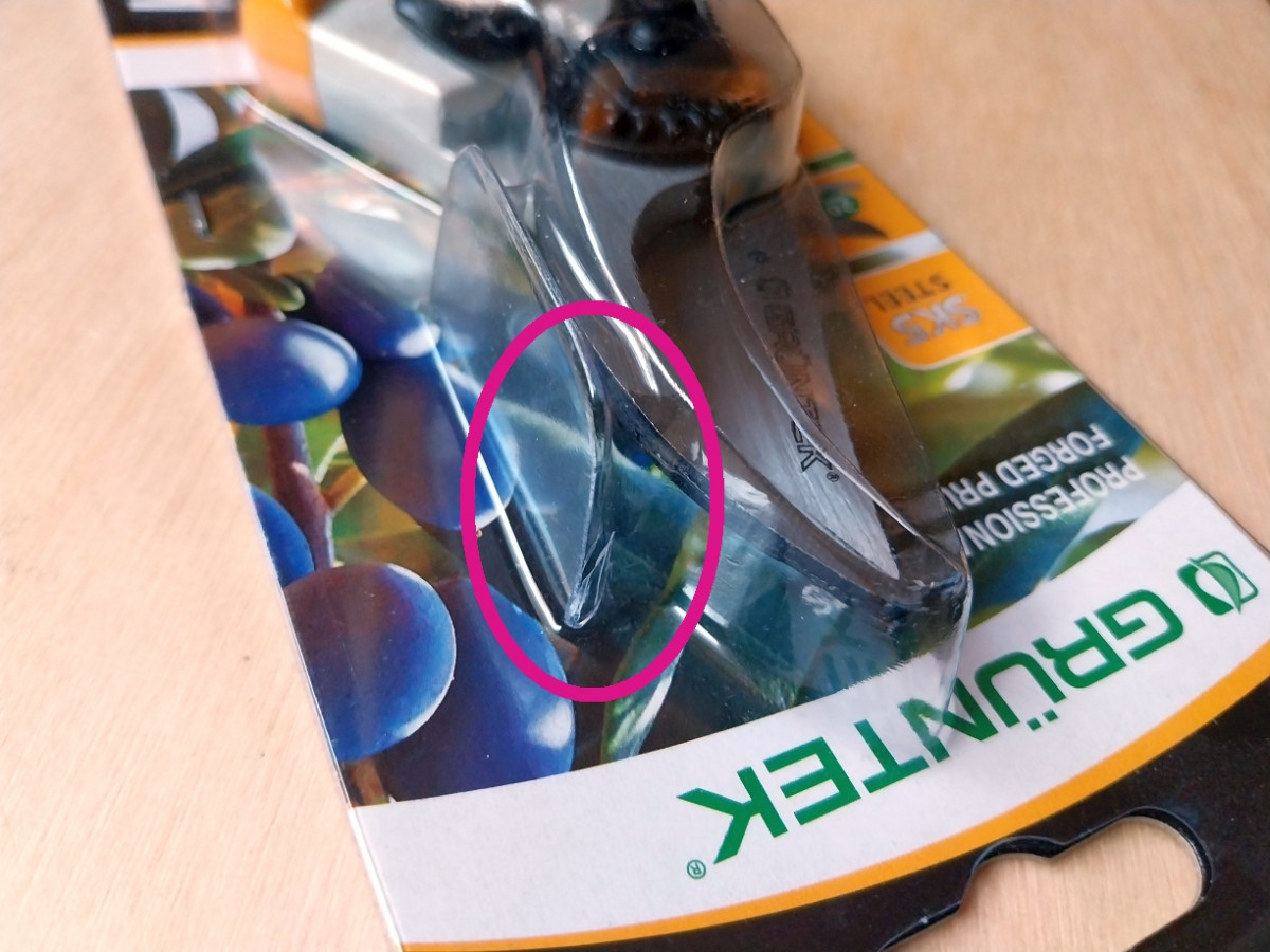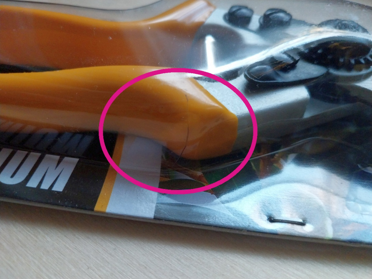 - A termék csomagolása a szállítás során sérülést szenvedett: a műanyag védőburkolat 2 helyen megtört (ld. 3-4. kép). Azonban a termék sértetlen állapotú.