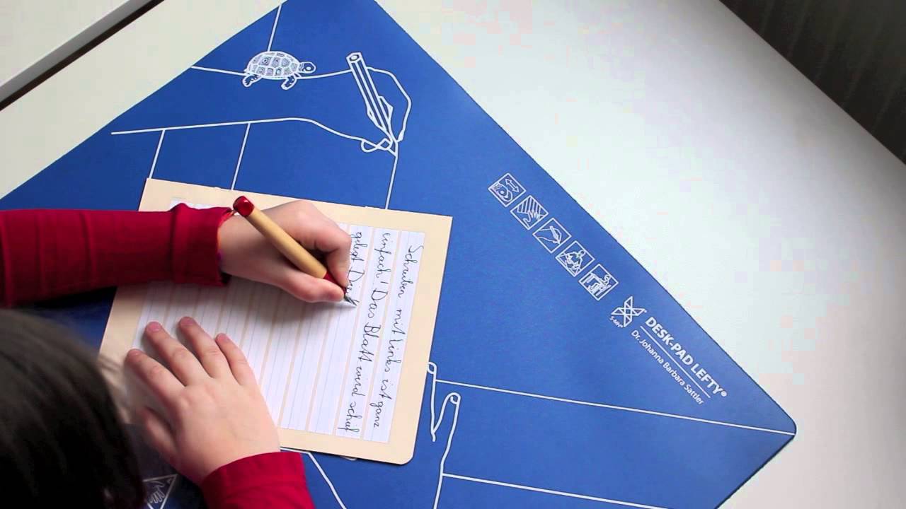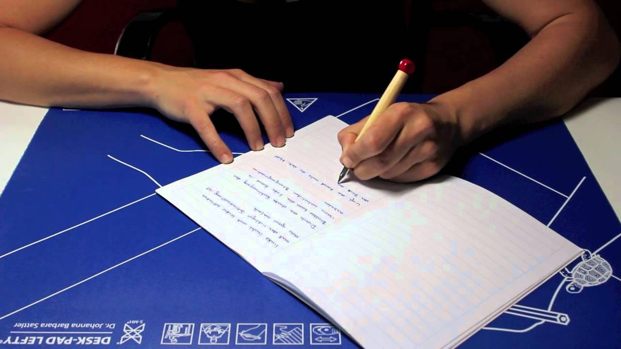 A bal kézzel írók számára több szempontból is előnyösebb, ha a lapot, füzetet a test középtengelyétől kissé balra eltolva, az óra járásával megegyezően 30-45 fokban elforgatják.