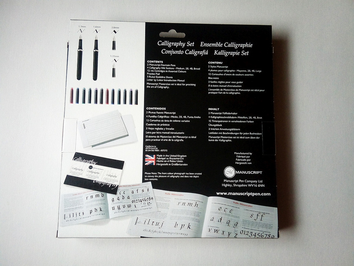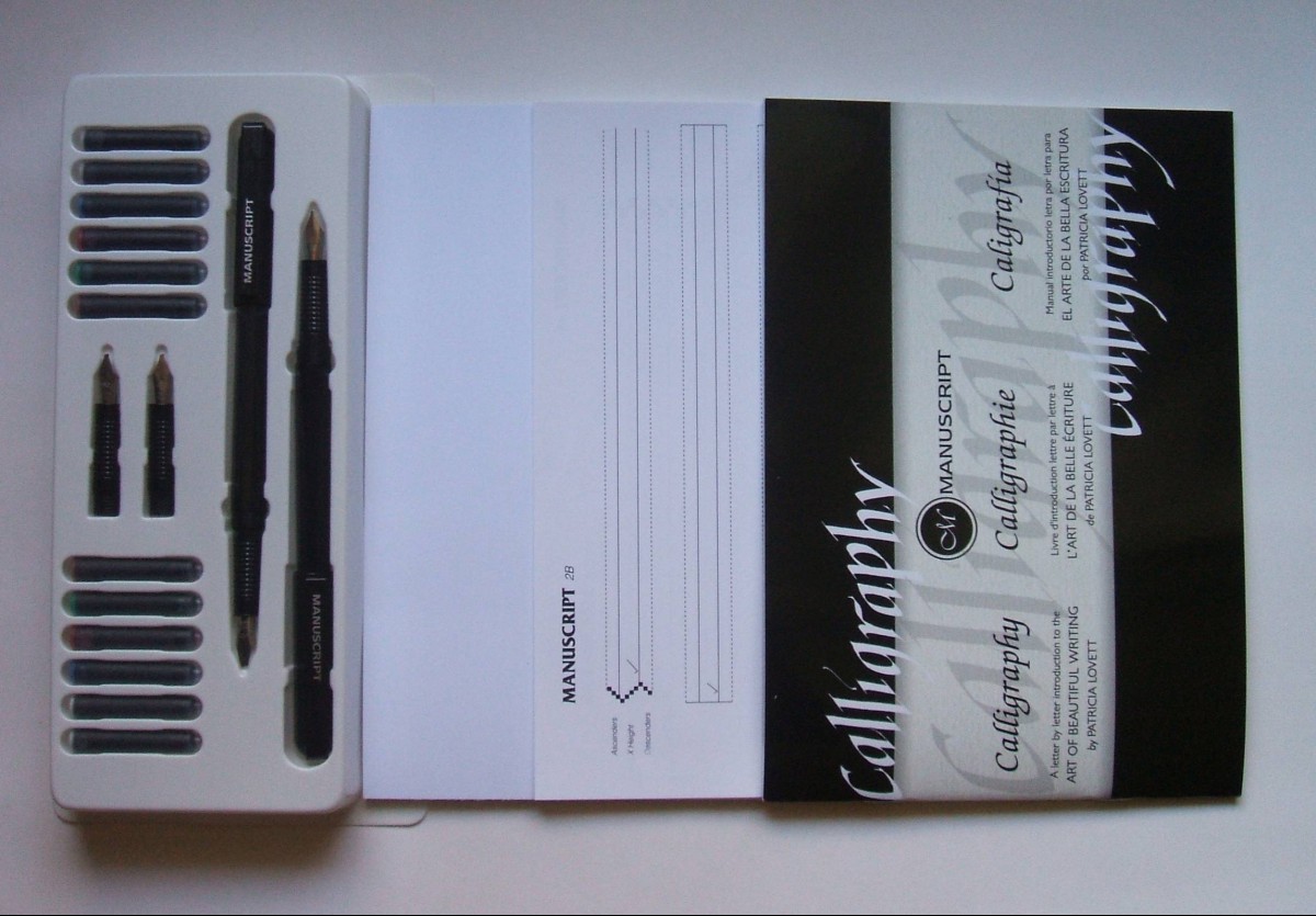 A Manuscript cég balkezeseknek készített Masterclass készlete tökéletes a kalligráfia művészetének elsajátításához; a Masterclass készlet lehetőséget ad a kezdő kalligráfusoknak, hogy megtapasztalják a minőségi tollhegyek és tinták széles skáláját, miközben Patricia Lovett, kalligráfus betűről betűre bevezeti őket a szép kézírás művészetébe.